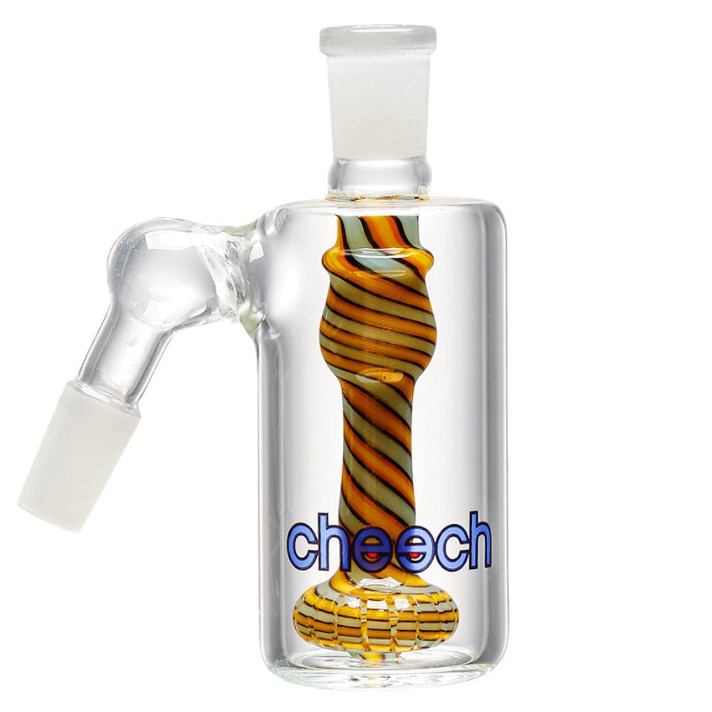 This premium 45° 14mm ash catcher combines style and functionality, featuring a worked glass downstem and disc percolator for cooler, smoother hits. Crafted from durable borosilicate glass, it keeps your bong cleaner and adds a unique touch to your setup.